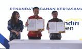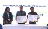 AVP Brand and Corporate Partnership, Ade Herviany, Presiden Direktur KlikDokter, Hendra H. Tjong dan Direktur Bisnis Bank Mandiri Taspen, Maswar Purnama (dari kiri) melakukan penandatanganan kerja sama di Jakarta, Senin (29/5/2023). Bank Mandiri Taspen meresmikan Komunitas Mantap Indonesia (KMI) yang akan menjadi wadah silaturahmi para pensiunan sekaligus bentuk kepedulian Bank Mandiri Taspen kepada para nasabahnya. (FOTO : Dok Republika)