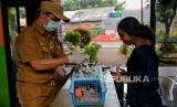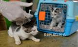 Petugas dari Suku Dinas Ketahanan Pangan, Kelautan dan Pertaniaan (KPKP) Jakarta Selatan mengecek kesehatan hewan sebelum menyuntikan vaksin rabies di RPTRA Asoka, Jakarta, Selasa (30/5/2023). Sudin KPKP menggelar vaksinasi rabies secara rutin setiap bulan di seluruh Kecamatan di Jakarta Selatan, dengan jumlah kuota vaksin perlokasi sebanyak 150 vaksin. Hewan peliharaan yang bisa divaksin rabies yakni kucing, anjing, kera dan musang. (FOTO : Republika/Thoudy Badai)