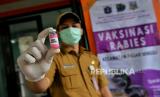 Petugas dari Suku Dinas Ketahanan Pangan, Kelautan dan Pertaniaan (KPKP) Jakarta Selatan menunjukan jenis vaksin rabies di RPTRA Asoka, Jakarta, Selasa (30/5/2023). Sudin KPKP menggelar vaksinasi rabies secara rutin setiap bulan di seluruh Kecamatan di Jakarta Selatan, dengan jumlah kuota vaksin perlokasi sebanyak 150 vaksin. Hewan peliharaan yang bisa divaksin rabies yakni kucing, anjing, kera dan musang. (FOTO : Republika/Thoudy Badai)