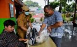 Warga membawa hewan peliharaannya untuk dilakaukan vaksinasi rabies di RPTRA Asoka, Jakarta, Selasa (30/5/2023). Suku Dinas Ketahanan Pangan, Kelautan dan Pertaniaan (KPKP) Jakarta SelataN menggelar vaksinasi rabies secara rutin setiap bulan di seluruh Kecamatan di Jakarta Selatan, dengan jumlah kuota vaksin perlokasi sebanyak 150 vaksin. Hewan peliharaan yang bisa divaksin rabies yakni kucing, anjing, kera dan musang. (FOTO : Republika/Thoudy Badai)