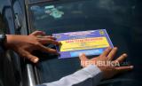 Stiker tanda pelanggaran parkir terpasang pada kaca mobil di Jalan Pasar Kembang, Yogyakarta, Selasa (30/5/2023). Penertiban parkir liar di Jalan Pasar Kembang dilakukan petugas gabungan Satlantas Polresta Yogyakarta, Dishub Kota Yogyakarta, dan Satpol PP Kota Yogyakarta. Hal ini dilakukan untuk keselamatan dan kenyamanan berlalu-lintas di area wisata. Selain itu, juga banyaknya kendaraan yang berhenti serta parkir liar saat sore dan malam. Untuk mengantisipasi petugas memasang water barrier dan pita larangan melintas sepanjang 400 meter di Jalan Pasar Kembang. (FOTO : Republika/Wihdan Hidayat)