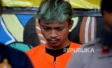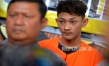 Tersangka Rizky dihadirkan saat gelar perkara kejahatan geng remaja di Polsek Umbulharjo, Yogyakarta, Selasa (30/5/2023). Polsek Umbulharjo mengamankan enam tersangka dari Geng Vascal dan empat diantaranya masih di bawah umur sehingga tidak dihadirkan saat gelar kasus. Sedangkan untuk ketuanya yakni Reno merupakan residivis untuk kasus yang serupa. Para pelaku dijerat pasal yang berbeda, Reno dijerat Pasal 304 KUHP, Rizky dijerat Pasal 137 KUHP subsider Pasal 351 KUHP atau Pasal 368 KUHP. Sedangkan untuk empat tersangka lainya dijerat dengan Pasal 80 Jo 76C UU RI/ 2014 tentang perubahan UU RI Nomer 23/ 20022. (FOTO : Republika/Wihdan Hidayat)