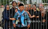 Jamaah haji mendengarkan panduan dari petugas haji di kompleks Asrama Haji Pondok Gede, Jakarta, Selasa (30/5/2023). (FOTO : Republika/Thoudy Badai)