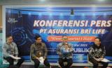 Direktur Utama BRI Life Iwan Pasila menyampaikan paparan Kinerja Kuartal I 2023 di Jakarta, Selasa (30/5/2023).  (FOTO : Republika/Putra M. Akbar)
