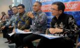 Direktur Utama BRI Life Iwan Pasila (kedua kanan) bersama Direktur Operasional Yossie William Iroth, Direktur Pemasaran Sutadi, Direktur Keuangan Lim Chet Ming (dari kiri ke kanan) menyampaikan paparan Kinerja Kuartal I 2023 di Jakarta, Selasa (30/5/2023).  (FOTO : Republika/Putra M. Akbar)