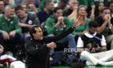 Pelatih Kepala Miami Heat Erik Spoelstra berikan perintah kepada pemain pada Game 7 final NBA Wilayah Timur di Boston, Selasa, (30/5/ 2023) WIB. (FOTO : AP/Charles Krupa)
