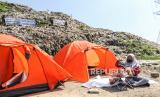 REPUBLIKA.CO.ID, DEPOK -- Relawan melakukan aksi kemah di dekat area tumpukkan sampah TPA Cipayung, Depok, Jawa Barat, Rabu (31/5/2023).