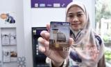 Karyawan menunjukkan kartu Shar-E Debit Muamalat di Muamalat Tower, Jakarta, Rabu (31/5/2023). Bank Muamalat memberikan kemudahan bagi jamaah haji yang ingin bertransaksi di tanah suci melalui fasilitas kartu Shar-E Debit Muamalat. Kartu Shar-E Debit Muamalat berlogo VISA ini dapat digunakan di mesin ATM berlogo VISA/Plus di Arab Saudi dan di mesin ATM milik Bank Al Rajhi yang tersebar di Makkah, Madinah dan Jeddah. Kelebihan dari kartu Shar-E Debit Muamalat ini adalah tersedia pilihan transaksi bahasa Indonesia saat bertransaksi di ATM. (FOTO : Republika/Edwin Dwi Putranto)