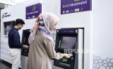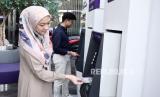 Karyawan bertransaksi menggunakan kartu Shar-E Debit Muamalat di mesin ATM Muamalat Tower, Jakarta, Rabu (31/5/2023). Bank Muamalat memberikan kemudahan bagi jamaah haji yang ingin bertransaksi di tanah suci melalui fasilitas kartu Shar-E Debit Muamalat. Kartu Shar-E Debit Muamalat berlogo VISA ini dapat digunakan di mesin ATM berlogo VISA/Plus di Arab Saudi dan di mesin ATM milik Bank Al Rajhi yang tersebar di Makkah, Madinah dan Jeddah. Kelebihan dari kartu Shar-E Debit Muamalat ini adalah tersedia pilihan transaksi bahasa Indonesia saat bertransaksi di ATM. (FOTO : Republika/Edwin Dwi Putranto)