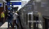 Sejumlah penumpang turun dari KA Lokal Bandung Raya setibanya di Stasiun Gedebage, Kota Bandung, Jawa Barat, Kamis (1/6/2023). (FOTO : ABDAN SYAKURA/REPUBLIKA)