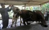 REPUBLIKA.CO.ID, SIDOARJO -- Pekerja memberi minuman untuk sapi di kandang kawasan Balongbendo, Sidoarjo, Jawa Timur, Kamis (1/6/2023).