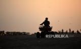 Wisatawan menyewa motor ATV di Pantai Parangtritis, Bantul, Yogyakarta, Kamis (1/6/2023). Libur panjang Hari Lahir Pancasila dan Hari Raya Waisak menjadi peluang bagi warga untuk berwisata ke Yogyakarta. Pantai Parangtritis masih menjadi salah satu tujuan utama wisatawan untuk menghabiskan waktu saat senja. Kepadatan wisatawan di Yogyakarta diprediksi terjadi hingga Ahad (4/6/2023) mendatang. (FOTO : Republika/Wihdan Hidayat)