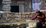Dalang Indra Suroinggeno membedah Wayang Beber Pancasila sebelum Kirab Garuda memperingati Hari Lahir Pancasila di Pedukuhan Kanutan, Bambanglipuro, Bantul, Yogyakarta, Kamis (1/6/2023). Kirab Garuda bersama warga masyarakat ini berkeliling desa dengan melewati Jalan Proklamasi, Jalan Garuda, Jalan Merdeka, dan Jalan Pancasila. Pada acara ini sekaligus juga mengenalkan Wayang Beber Pancasila, yang berisi sejarah dan nilai-nilai Pancasila. (FOTO : Republika/Wihdan Hidayat)