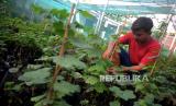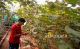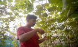 Pekerja memeriksa sambungan bibit tanaman anggur di Jogja Anggur, Bantul, Yogyakarta, Kamis (1/6/2023). Selain menjual bibit tanaman anggur, di sini pengunjung juga dapat belajar edukasi tentang tanaman anggur. Harga setiap bibit tanaman anggur dijual dengan harga Rp 150 ribu untuk usia sekitar dua bulan. Berbagai jenis bibit tanaman anggur yang dijual misalnya jenis Dixon, Everest, Ninel, dan yang paling laris saat ini Tamaki. Untuk penjualan bibit tanaman anggur ini sudah menjangkau seluruh Indonesia. (FOTO : Republika/Wihdan Hidayat)