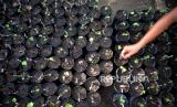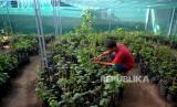 Pekerja memangkas daun bibit tanaman anggur di Jogja Anggur, Bantul, Yogyakarta, Kamis (1/6/2023). Selain menjual bibit tanaman anggur, di sini pengunjung juga dapat belajar edukasi tentang tanaman anggur. Harga setiap bibit tanaman anggur dijual dengan harga Rp 150 ribu untuk usia sekitar dua bulan. Berbagai jenis bibit tanaman anggur yang dijual misalnya jenis Dixon, Everest, Ninel, dan yang paling laris saat ini Tamaki. Untuk penjualan bibit tanaman anggur ini sudah menjangkau seluruh Indonesia. (FOTO : Republika/Wihdan Hidayat)