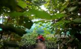 Pekerja membersihkan area tanaman anggur di Jogja Anggur, Bantul, Yogyakarta, Kamis (1/6/2023). Selain menjual bibit tanaman anggur, di sini pengunjung juga dapat belajar edukasi tentang tanaman anggur. Harga setiap bibit tanaman anggur dijual dengan harga Rp 150 ribu untuk usia sekitar dua bulan. Berbagai jenis bibit tanaman anggur yang dijual misalnya jenis Dixon, Everest, Ninel, dan yang paling laris saat ini Tamaki. Untuk penjualan bibit tanaman anggur ini sudah menjangkau seluruh Indonesia. (FOTO : Republika/Wihdan Hidayat)