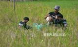 Warga menghias orang-orangan sawah saat Festival Van Der Wick 2023 di Banyurejo, Sleman, Yogyakarta, Jumat (2/6/2023). Lomba membuat dan menghias orang-orangan sawah ini diikuti oleh warga sekitar dengan menggunakan bahan-bahan daur ulang dan bahan alami. Berbagai bentuk dan model orang-orangan sawah dibuat oleh beberapa peserta yang ikut. Dahulu orang-orangan sawah ini digunakan petani untuk negusir hama burung jelang panen padi. Acara ini merupakan dari Festival Van Der Wijck yang bertempat di kanal Van Der Wijck. (FOTO : Republika/Wihdan Hidayat)