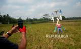 Pengunjung memotret lomba membuat orang-orangan sawah saat Festival Van Der Wick 2023 di Banyurejo, Sleman, Yogyakarta, Jumat (2/6/2023). Lomba membuat dan menghias orang-orangan sawah ini diikuti oleh warga sekitar dengan menggunakan bahan-bahan daur ulang dan bahan alami. Berbagai bentuk dan model orang-orangan sawah dibuat oleh beberapa peserta yang ikut. Dahulu orang-orangan sawah ini digunakan petani untuk negusir hama burung jelang panen padi. Acara ini merupakan dari Festival Van Der Wijck yang bertempat di kanal Van Der Wijck. (FOTO : Republika/Wihdan Hidayat)