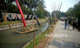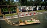 Gethek atau bambu apung yang digunakan penjual saat Festival Van Der Wijck di Banyurejo, Sleman, Yogyakarta, Jumat (2/6/2023). Festival Van Der Wijck yang kedua ini menggabungkan potensi kanal irigasi, pertanian, dan sosial budaya masyarakat. Tema festival pada tahun ini yakni rice for all. Tema ini sebagai wujud apresiasi atas keberadaan saluran irigasi Van Der Wijck yang selama ini mendukung keberlangsungan pertanian di Sleman bagian Barat yang mampu menjaga ketahanan pangan. Berbagai acara budaya disiapkan panitia pada acara yang berlangsung hingga Ahad (3/6/2023). (FOTO : Republika/Wihdan Hidayat)