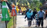 Warga berjalan-jalan di area Festival Van Der Wijck di Banyurejo, Sleman, Yogyakarta, Jumat (2/6/2023). Festival Van Der Wijck yang kedua ini menggabungkan potensi kanal irigasi, pertanian, dan sosial budaya masyarakat. Tema festival pada tahun ini yakni rice for all. Tema ini sebagai wujud apresiasi atas keberadaan saluran irigasi Van Der Wijck yang selama ini mendukung keberlangsungan pertanian di Sleman bagian Barat yang mampu menjaga ketahanan pangan. Berbagai acara budaya disiapkan panitia pada acara yang berlangsung hingga Ahad (3/6/2023). (FOTO : Republika/Wihdan Hidayat)