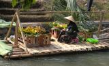 Penjual sayuran menggunakan gethek atau bambu apung saat Festival Van Der Wijck di Banyurejo, Sleman, Yogyakarta, Jumat (2/6/2023). Festival Van Der Wijck yang kedua ini menggabungkan potensi kanal irigasi, pertanian, dan sosial budaya masyarakat. Tema festival pada tahun ini yakni rice for all. Tema ini sebagai wujud apresiasi atas keberadaan saluran irigasi Van Der Wijck yang selama ini mendukung keberlangsungan pertanian di Sleman bagian Barat yang mampu menjaga ketahanan pangan. Berbagai acara budaya disiapkan panitia pada acara yang berlangsung hingga Ahad (3/6/2023). (FOTO : Republika/Wihdan Hidayat)