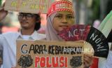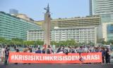 Sejumlah massa aksi dari berbagai elemen saat melaksanakan unjuk rasa di kawasan Bundaran HI, Jakarta, Ahad (4/6/2023). Aksi bertepatan dalam rangka hari lingkungan hidup sedunia tersebut menuntut pemerintah untuk segera mengambil tindakan terkait permasalahan krisis iklim di Indonesia. (FOTO : Republika/Putra M. Akbar)