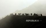 Para wisatawan berkunjung untuk melihat kawah dari kaldera Gunung Ijen. TWA Ijen telah ditetapkan sebagai anggota UNESCO Global Geopark (UGG).