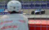 Pembalap Jaguar TCS Racing Mitch Evans melaju saat babak kualifikasi Formula E 2023 di Jakarta International E-Prix Circuit, Jakarta, Ahad (4/6/2023). Maximilian Gunther merebut pole position pada babak kualifikasi Formula E 2023 dengan catatan waktu 1 menit 7,753 detik disusul pembalap tim Avalanche Andretti Jake Dennis pada posisi kedua dan pembalap Jaguar TCS Racing Mitch Evans pada posisi ketiga. (FOTO : Republika/Putra M. Akbar)