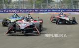Sejumlah pembalap melaju saat babak kualifikasi Formula E 2023 di Jakarta International E-Prix Circuit, Jakarta, Ahad (4/6/2023). Maximilian Gunther merebut pole position pada babak kualifikasi Formula E 2023 dengan catatan waktu 1 menit 7,753 detik disusul pembalap tim Avalanche Andretti Jake Dennis pada posisi kedua dan pembalap Jaguar TCS Racing Mitch Evans pada posisi ketiga. (FOTO : Republika/Putra M. Akbar)