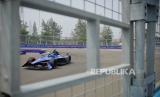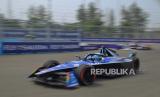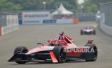 Pembalap tim Avalanche Andretti Jake Dennis melaju saat babak kualifikasi Formula E 2023 di Jakarta International E-Prix Circuit, Jakarta, Ahad (4/6/2023). Maximilian Gunther merebut pole position pada babak kualifikasi Formula E 2023 dengan catatan waktu 1 menit 7,753 detik disusul pembalap tim Avalanche Andretti Jake Dennis pada posisi kedua dan pembalap Jaguar TCS Racing Mitch Evans pada posisi ketiga. (FOTO : Republika/Putra M. Akbar)