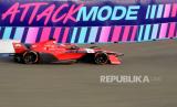 Pembalap Avalanche Andretti Formula E Jake Dennis melalui attack mode. (FOTO : Republika/Putra M. Akbar)