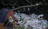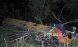 REPUBLIKA.CO.ID, TIMOR TENGAH UTARA -- Sejumlah warga menyaksikan truk pengangkut beras Bulog yang mengalami kecelakaan dan jatuh ke jurang di Kilometer 12 Kabupaten Timor Tengah Utara (TTU), NTT, Ahad (4/6/2023) malam.