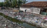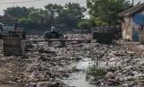 REPUBLIKA.CO.ID, SERANG -- Warga melintas di sekitar tumpukan sampah di kali Peng, Tirtayasa, Kabupaten Serang, Banten, Ahad (4/6/2023).