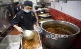 REPUBLIKA.CO.ID, MEKKAH -- Pekerja memasak makanan yang akan didistribusikan kepada jamaah di Perusahaan Katering Ahla Zad Company di Makkah, Arab Saudi, Ahad (4/6/2023).