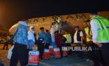 REPUBLIKA.CO.ID, PADANG -- Jamaah calon haji mengantre memasuki pesawat di Bandara Internasional Minangkabau (BIM), Padang Pariaman, Sumatra Barat, Senin (5/6/2023) dini hari.