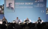 Penulis buku (Bukan) Kisah Sukses Erick Thohir Abdullah Sammy (kedua kiri) bersama Pemerhati Olahraga Fritz E Simandjuntak (kedua kanan) dan Deputi CEO PT PBB Teddy Tjahjono (kanan) menjadi narasumber dalam Bedah Buku (Bukan) Kisah Sukses Erick Thohir di Telkom University, Kabupaten Bandung, Jawa Barat, Senin (5/6/2023). Buku biografi tersebut menceritakan perjalanan hidup dan penggalan-penggalan kisah Erick Thohir sejak masa sekolah, sebagai seorang pengusaha, pimpinan media, penggemar olahraga, hingga menjadi pejabat publik sebagai Menteri BUMN saat ini. (FOTO : ABDAN SYAKURA/REPUBLIKA)