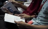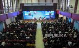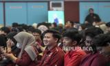 Mahasiswa menghadiri acara Bedah Buku (Bukan) Kisah Sukses Erick Thohir di Telkom University, Kabupaten Bandung, Jawa Barat, Senin (5/6/2023). (FOTO : ABDAN SYAKURA/REPUBLIKA)