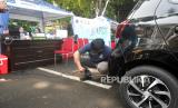 REPUBLIKA.CO.ID, BOGOR -- Petugas melakukan uji emisi kendaraan roda dua di halaman Balai Kota Bogor, Jawa Barat, Senin (5/6/2023).