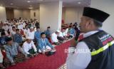 REPUBLIKA.CO.ID,Peserta mendengarkan pembekalan manasik oleh konsultan ibadah PPIH Arab Saudi di salah satu hotel kawasan Mekkah, Arab Saudi, Senin (5/6/2023).