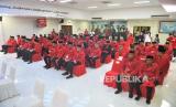 Sejumlah kader PDI Perjuangan mengikuti rakernas di Jakarta, Selasa (6/6/2023). Rakernas PDI Perjuangan yang berlangsung 6-8 Juni 2023 itu mengangkat tema fakir miskin dan anak-anak terlantar dipelihara oleh negara. (FOTO : ANTARA FOTO/Akbar Nugroho Gumay)
