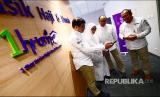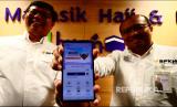 Dirut PT Bank Muamalat Indonesia Tbk Indra Falatehan (kiri) didampingi oleh Dir Op dan Digital Bank Muamalat Wahyu Avianto (kanan) memperlihatkan tampilan Muamalat DIN calon jamaah haji dari Bank Muam (FOTO : Republika/Yogi Ardhi)