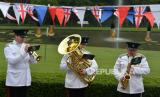REPUBLIKA.CO.ID,BOGOR -- Personel band militer Inggris, The Royal Yeomanry (Inns of Court and City Yeomanry), memainkan alat musik saat tampil di Kebun Raya Bogor, Jawa Barat, Selasa (6/6/2023).
