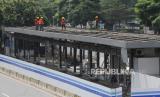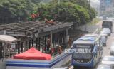 REPUBLIKA.CO.ID, JAKARTA -- Sejumlah pekerja membongkar Halte Transjakarta Karet di Sudirman, Jakarta Pusat, Rabu (7/6/2023).