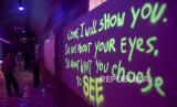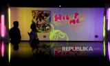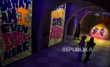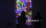 Pengunjung mengamati karya seni rupa pada pameran Redmiller Experience Behind Those Eyes di Grey Art Gallery, Braga, Kota Bandung, Jawa Barat, Rabu (7/6/2023). Pameran seni rupa, lukisan dan instalasi neon karya seniman multidisiplin Peter Rhian Gunawan tersebut mengusung tema tentang ungkapan perasaan untuk memahami diri sendiri melalui warna serta bentuk. (FOTO : ABDAN SYAKURA/REPUBLIKA)