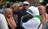 Keluarga mengantar keberangkatan jamaah calon haji kloter 48 menuju Embarkasi Solo di Pendopo Parasamya Bantul, Yogyakarta, Rabu (7/6/2023). Sebanyak 360 orang yang terdiri dari 353 jamaah calon haji dari kelompok bimbingan ibadah haji (KBIH) Aisiyah serta 7 petugas asal Kabupaten Bantul yang tergabung dalam kloter 48 dilepas menuju Embarkasi Solo. Kloter 48 ini termasuk dalam pemberangkatan ibadah haji gelombang kedua yang akan mendarat di Jeddah. (FOTO : Republika/Wihdan Hidayat)