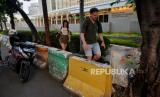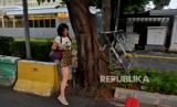 Pejalan kaki berjalan menghindari blokade yang menutup trotoar di depan Kedutaan Besar Amerika Serikat di Jalan Medan Merdeka Selatan, Jakarta Pusat, Rabu (7/6/2023). Pemprov DKI Jakarta memastikan bakal melakukan pembukaan blokade trotoar di depan Kedubes Amerika Serikat usai melakukan pembahasan bersama pihak terkait diantaranya pihak Kementerian Luar Negeri, Kedubes Amerika Serikat, serta Direktorat Pengamanan Objek Vital Polda Metro Jaya. Namun Pemprov DKI belum bisa memastikan kapan waktu pembukaannya. Sebelumnya Kedubes AS melalui juru bicaranya mengungkapkan bahwa aksesibilitas, keamanan dan walkability merupakan faktor pertimbangan penting untuk kota besar seperti Jakarta sehingga rencana pembukaan trotoar di depan Kedubes AS disambut dengan baik. (FOTO : Republika/Thoudy Badai)