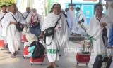 REPUBLIKA.CO.ID,BOYOLALI -- Sejumlah calon jamaah haji (calhaj) mengenakan pakaian ihram saat proses pemberangkatan di Asrama Haji Donohudan, Boyolali, Jawa Tengah, Rabu (7/6/2023).