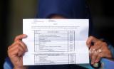 Wali murid menunjukkan surat kelulusan siswa dan nilai asesmen standardisasi penilaian daerah (ASPD) di SMPN 2 Yogyakarta, Kamis (8/6/2023). Provinsi Daerah Istimewa Yogyakarta hari ini serentak mengumumkan kelulusan siswa SMP. Untuk SMPN 2 berhasil lulus 100 persen dengan jumlah siswa 262 anak. Untuk pengumuman kelulusan tidak dihadiri oleh siswa hanya diwakilkan orang tua wali murid. Selain itu, juga ada larangan konvoi atau perayaan kelulusan yang berlebihan dari kepolisian. (FOTO : Republika/Wihdan Hidayat)