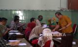 Wali kelas membagikan surat kelulusan siswa dan nilai asesmen standardisasi penilaian daerah (ASPD) di SMPN 2 Yogyakarta, Kamis (8/6/2023). Provinsi Daerah Istimewa Yogyakarta hari ini serentak mengumumkan kelulusan siswa SMP. Untuk SMPN 2 berhasil lulus 100 persen dengan jumlah siswa 262 anak. Untuk pengumuman kelulusan tidak dihadiri oleh siswa hanya diwakilkan orang tua wali murid. Selain itu, juga ada larangan konvoi atau perayaan kelulusan yang berlebihan dari kepolisian. (FOTO : Republika/Wihdan Hidayat)