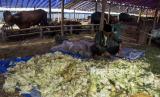 Pekerja menyiapkan pakan hewan qurban di salah satu tempat penjualan hewan qurban di Jalan Soekarno Hatta, Cipamokolan, Kota Bandung, Jawa Barat, Kamis (8/6/2023). Dinas Ketahanan Pangan dan Peternakan (DKPP) Jawa Barat menyebutkan kebutuhan hewan qurban di Jawa Barat pada Hari Raya Idul Adha diperkirakan mencapai 260 ribu ekor. Sementara stok ketersediaan hewan qurban mulai dari sapi, kambing, domba dan kerbau di Jawa Barat sebanyak 500 ribu ekor. (FOTO : ABDAN SYAKURA/REPUBLIKA)